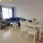 Im Trevilles Apartamenty - Granatowy stehen Gästen ein Wohnbereich und ein Balkon mit einer Waschmaschine zur Verfügung. Das Apartment verfügt über ein Badezimmer mit Handtüchern. Sie können sich auch eine getrennte Toilette genießen.